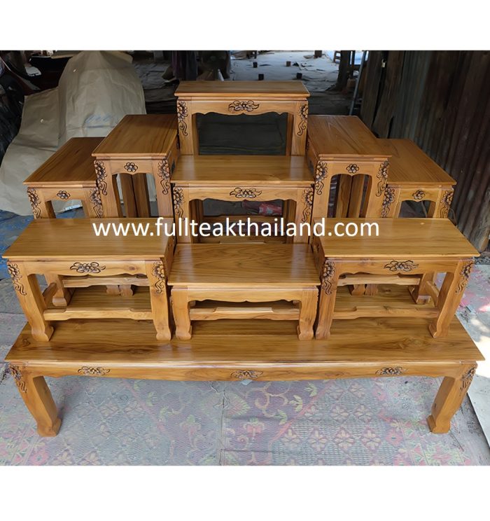 โต๊ะหมู่บูชาไม้สักแกะสลัก 9X9 (แกะสลัก)