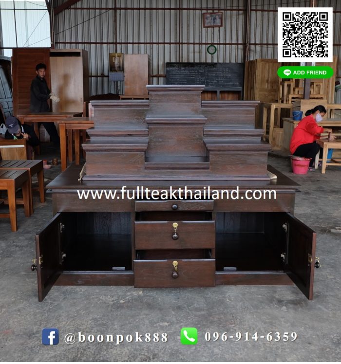 (แยกเป็น 2 ท่อน สามารถถอดประกอบได้) ฐานด้านบนมีบัวล๊อคตรงฐาน ประกอบไปด้วย 3 ลิ้นชัก และ 2 บานเปิด-ปิด ด้วยมือจับไม้แบบปุ่ม พร้อมกุญแจล็อค